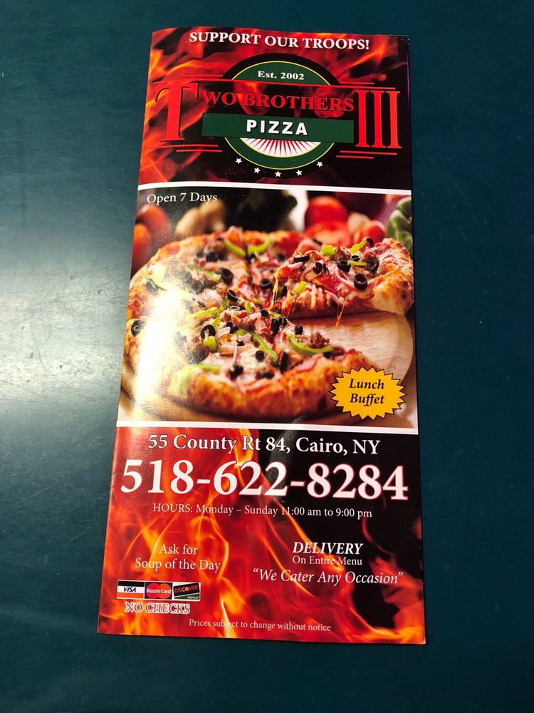 Welcome to Two Brothers Pizza Cairo, a culinary gem nestled in Cairo, New York. This delightful eatery specializes in a tantalizing array of pizzas, pasta, and salads that will satisfy any craving. The menu features unique specialty pizzas like the Chicken Cordon Bleu and the Large Grilled Chicken Caesar Salad Pizza, not to mention classic favorites such as the Tomato & Basil and Hawaiian Style.